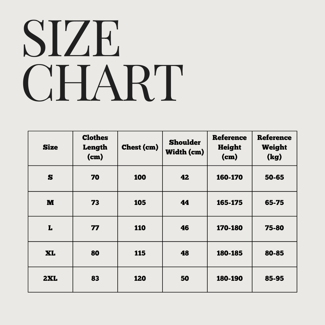 Size: Men’s sizing – please refer to our size chart to find your perfect fit.